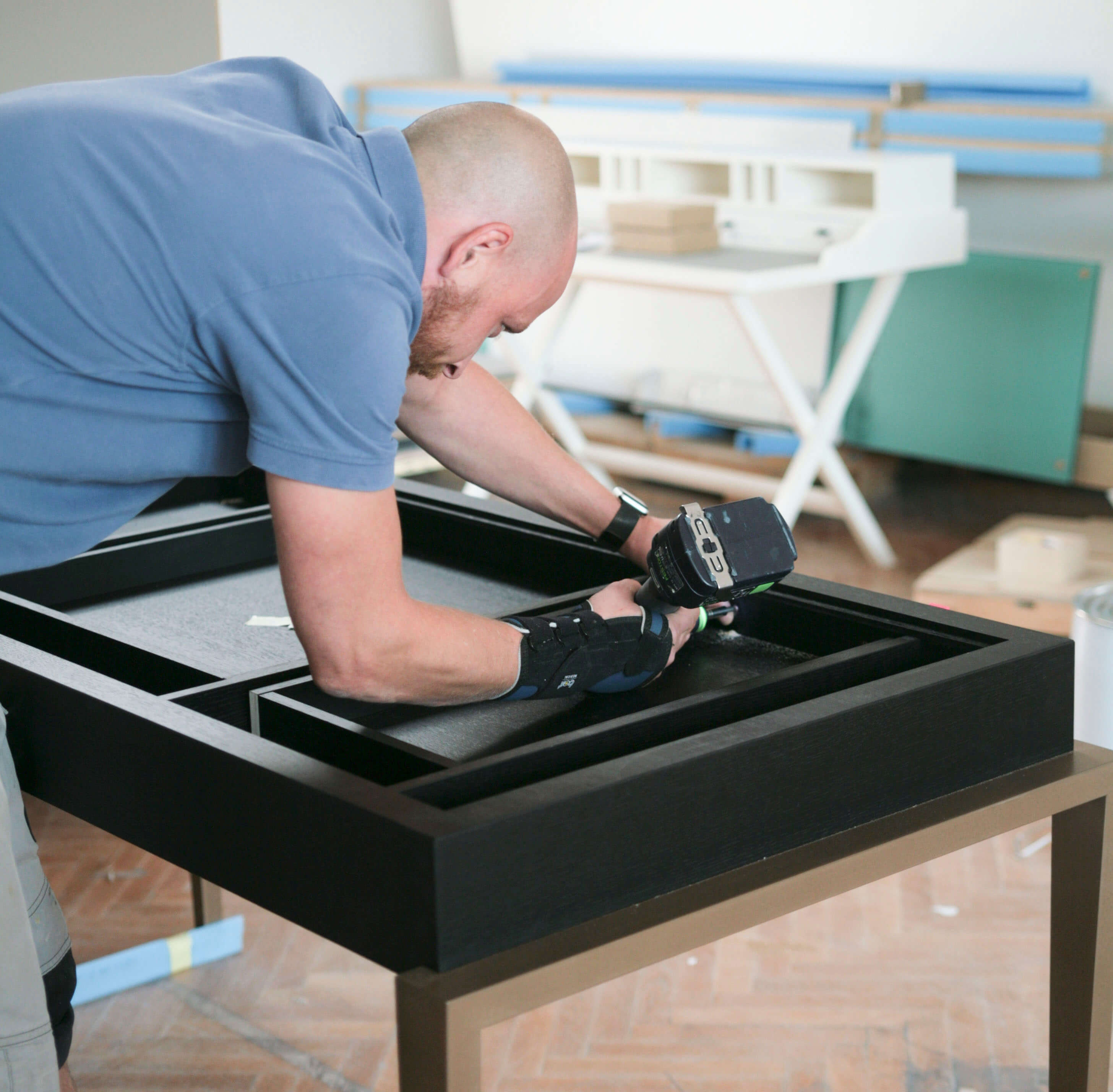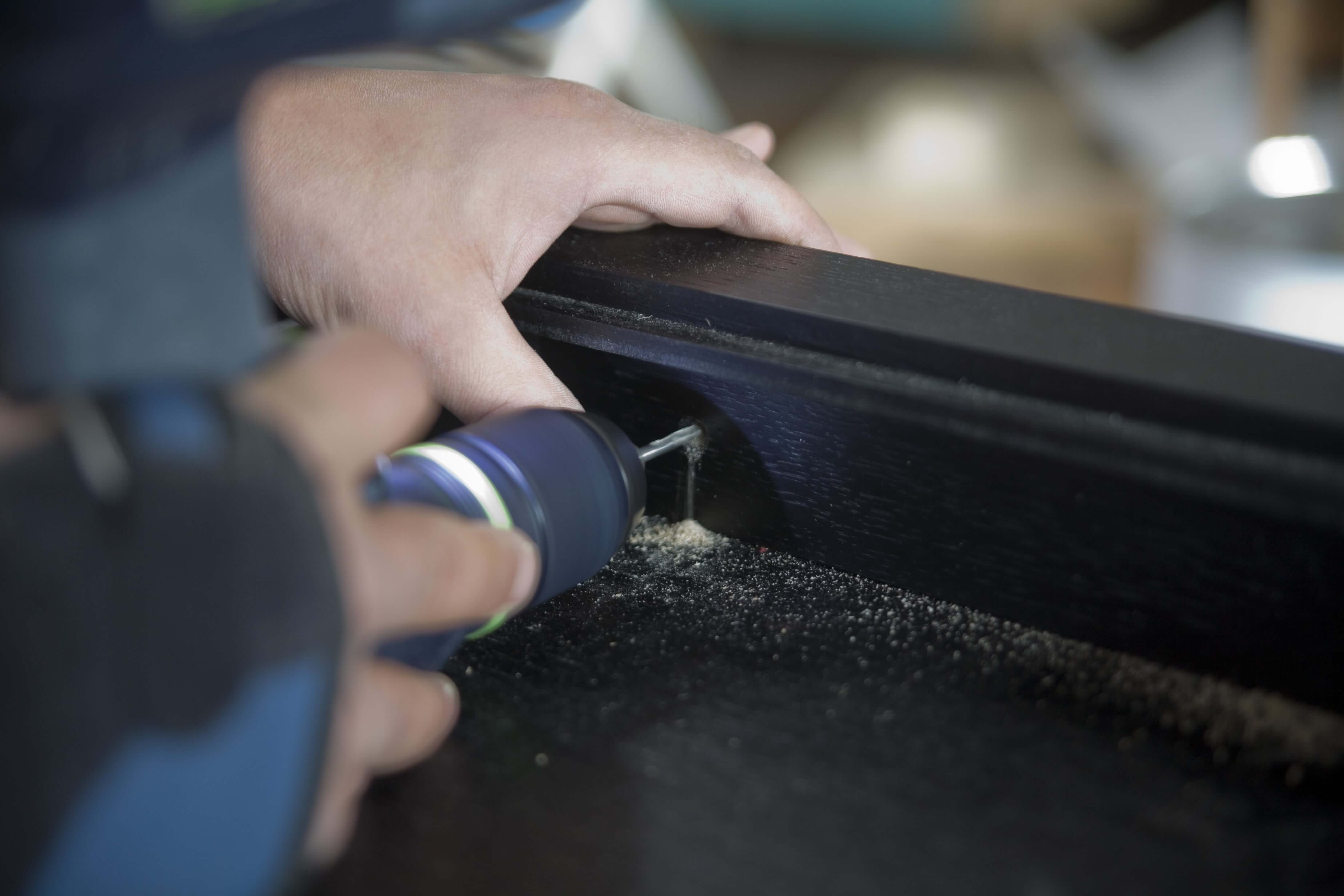 Holz lackiert und Leder