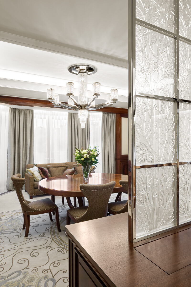 Die Herausforderung war es, das existierende Mobiliar und die Liebe des Kunden für Lalique Produkte im Speziellen, und Art Deco Möbeln im Allgemeinen, in das klassisch-moderne Gesamtkonzept einzubinden.