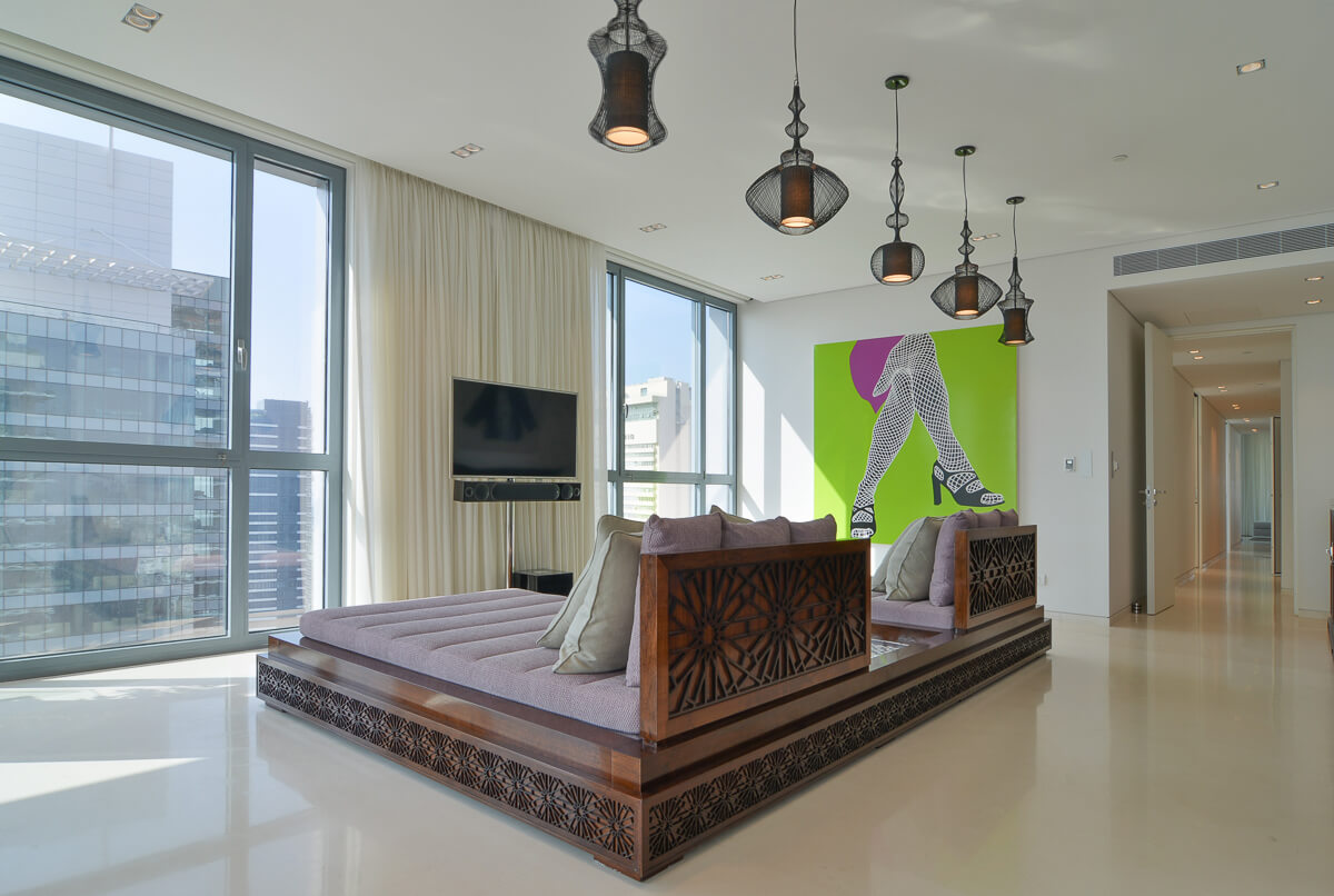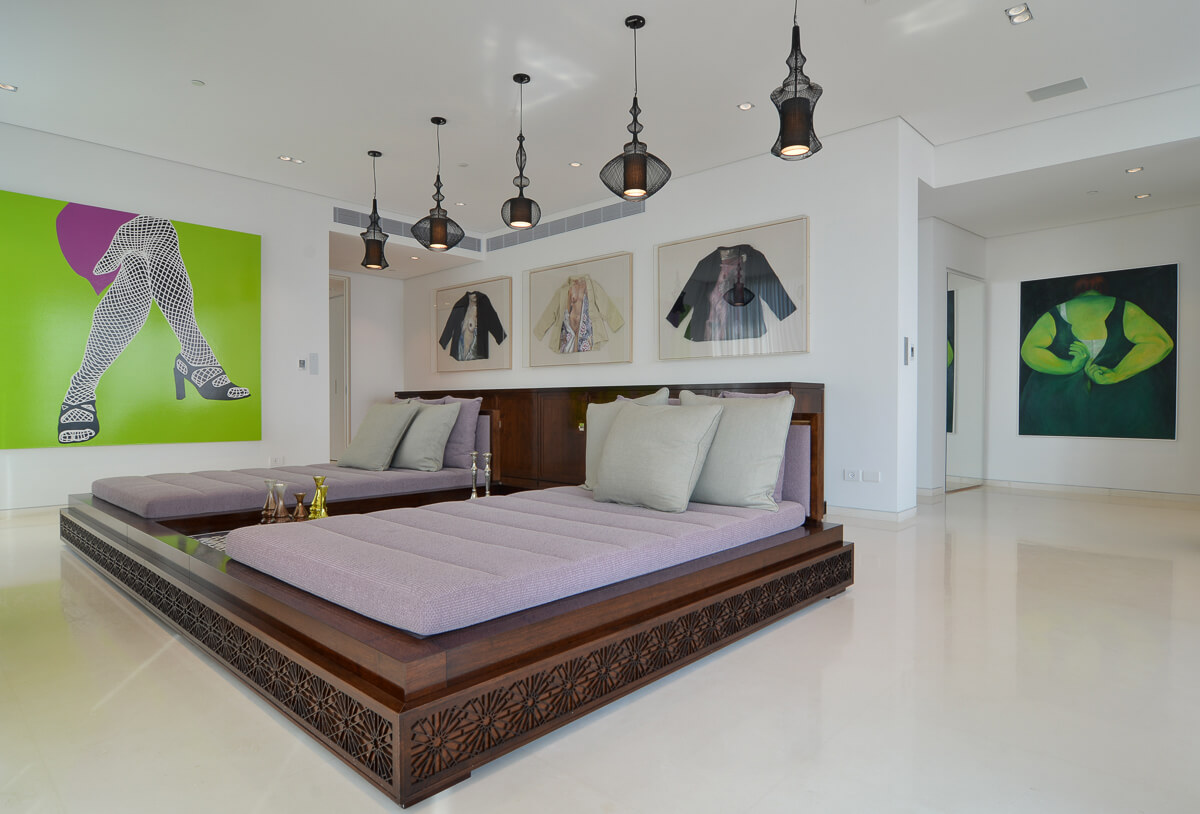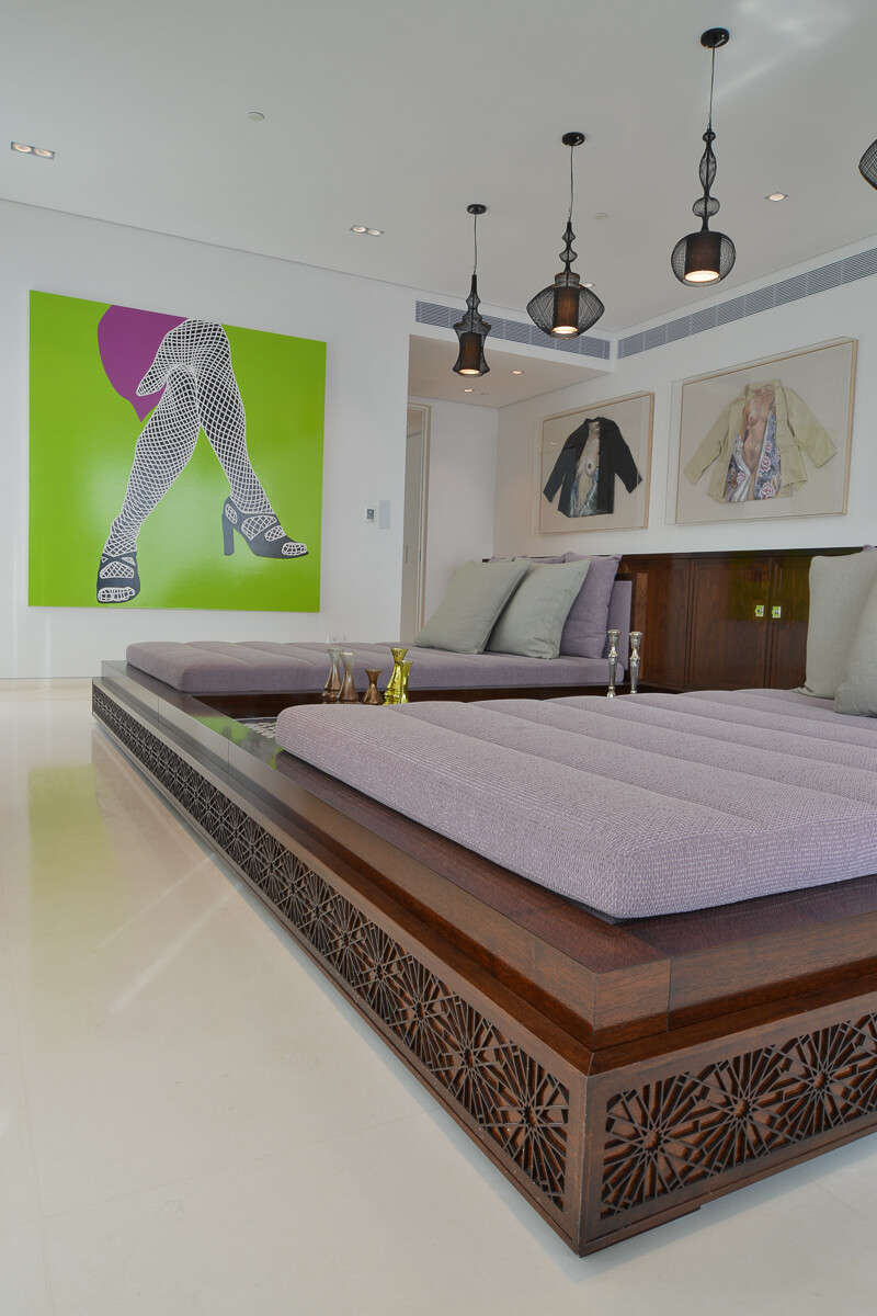 Helle Farben, viel Kunst, dezent eingesetzte orientalische Ornamentik und ein in weiten Teilen modernes, zeitloses Design. Das Highlight aus unserer Sicht war die Planung und Herstellung des Loungemöbels, welches sich trotz seiner Größe, perfekt in sein Umfeld eingefügt hat.